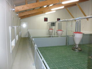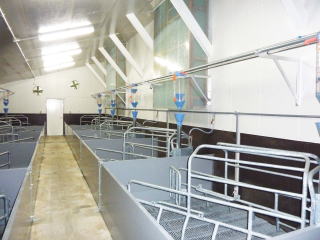 妊娠舎 1棟 母豚220頭収容 雄15頭 自家豚40頭